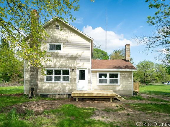 Move-in ready home available for immediate possession after closing! Set on the outskirts of town and up on high ground is this three-bedroom, one and a half bath home. You'll love the beautiful setting featuring fruit trees, a front porch, and two stall detached garage. Recent updates include new windows, furnace, and interior cosmetics! Step inside and you will love the spacious, airy kitchen with included stainless steel appliances and ample dining space. There is a large living area, half bath with laundry, and one bedroom to round out the main floor. On the second level are two additional bedrooms and the full bath. Seller is replacing the septic system before closing giving you peace of mind for many years to come. Schedule your showing today!