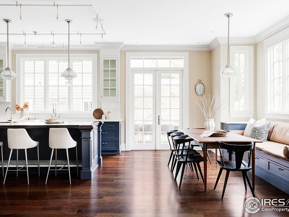 Nestled on an oversized, ultra-rare 14,424 sq ft corner shaded by mature trees, and featuring 4 en-suite bedrooms upstairs, 3189 5th St offers timeless style, seamless indoor-outdoor living & coveted location in Boulder's beloved Newlands neighborhood. A covered front porch leads into warm, welcoming interiors filled with natural light, hardwood floors & detailed millwork. A cozy living room with a fireplace opens to a formal dining room-ideal for hosting. At the back of the home, a spacious family room boasts built-in shelving, coffered ceilings & stone fireplace. The adjacent kitchen includes a farmhouse sink, stainless steel appliances, pot filler, 6-burner gas range, generous center island & sunny breakfast nook. The main level is complete with a powder room, laundry room & thoughtfully designed mudroom with limestone flooring & custom lockers. Above the attached two-car garage, a separate wing offers multiple rooms with vaulted wood-beamed ceilings, a bathroom & direct access to the backyard-perfect for guests, an office, or a creative studio. Upstairs, tall ceilings continue throughout 4 en-suite bedrooms connected by a wide hardwood hallway. The expansive primary suite includes hardwood flooring, a private balcony with foothill views & 2 walk-in closets. The primary bathroom features a steam shower, water closet & double vanity. A built-in window bench at the end of the hall adds a charming touch. Outside, the home's stunning outdoor spaces are designed for both relaxation and entertaining. A stone patio includes an outdoor kitchen w/ bar seating, grill, beverage tap, fridge & sink. A retractable awning offers shade, while a fire pit, in-ground hot tub, pergola & tranquil water feature create spaces to gather or unwind. Terraced landscaping, sculptural plantings & grassy lawn complete the serene setting. Located on a quiet, tree-lined street with Mt Sanitas trail access just 2 blocks away, 3189 5th offers the perfect blend of beauty & everyday convenience.