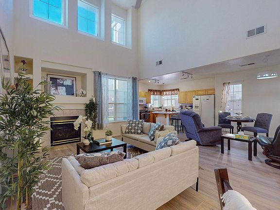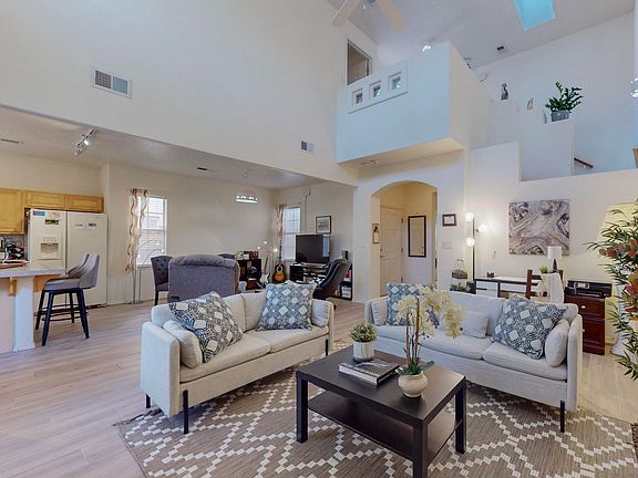 This beautiful 2-story home in a gated community is located in the heart of Rio Rancho. Close to shopping, restaurants, gyms, and much more. This 3-bedroom, 2 1/2-bathroom house, has just what you're looking for. The HOA maintains common areas, streets, clubhouse, and front yard landscaping outside of the gate. The private backyard is landscaped with artificial grass for low maintenance. An open floor plan with Natural light floods this beautiful townhouse with cathedral ceilings in the main area.
