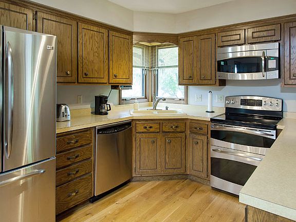 WHAT A DELIGHT!! Not many homes in Hopkins this NEW. Beautiful refurbished Barn Wood Kit floors. Fun double kitchen window. Upgraded appliances, two decks, 3 beds on one level.Mstr w/private ba. Lower lev is a W/O, has Rec room + bath. Fantastic shop behind the garage. Plenty of storage in the sheds.Great park one block away. Easy commute to downtown or walk to everything in Hopkins. Tish City Certified. LOWER LEVEL HAS A LARGE FAMILY ROOM, HALLWAY, AND BATH THAT ARE ALL NEARLY FINISHED.