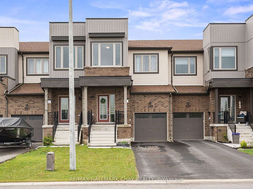 Welcome to 319 Atkinson Street a beautifully maintained 4-bedroom, 2.5-bathroom townhome that perfectly blends space, comfort, and family-friendly living. Just 5 years old, this bright and modern home offers 1545 sq. ft. of functional living space with 9 ft ceilings, laminate flooring throughout, and a stunning hardwood staircase that makes a great first impression.The main floor welcomes you with a spacious foyer, convenient inside entry to the garage, and a stylish powder room for guests. The open-concept layout features a large living area filled with natural light, and a generous eat-in kitchen with a breakfast barperfect for busy mornings and casual family meals. Sliding doors lead you to a fully fenced backyard that backs onto open fields, an ideal space for the kids to play or enjoy a summer BBQ with no rear neighbours. Upstairs, you'll find four roomy bedrooms, including a primary suite with a walk-in closet and private 3-piece ensuite with a stand-up shower. Whether you need extra space for a growing family, a home office, or a playroom, this home has the flexibility to suit your needs. Located in a family-friendly neighbourhood just minutes from parks, schools, and all the charm of downtown Stayner, this move-in ready townhome is the perfect place to start your next chapter.