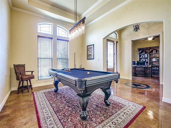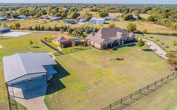 Custom home on almost 5 acres in Hart Farm! This home features 3 bedrooms, a study, formal dining, a gourmet kitchen with GE monogram SS appliances which opens to the family room. The Resort-like Backyard steals the show with a gorgeous pool and cabana w surround sound, sand volleyball, basketball court, covered pavilion, zip line, pond, shop,and a HUGE covered patio with fireplace! And there's more... a glass rock firepit, a water feature, a floating dock and a very nice playground! If you love to entertain, this is your dream come true! Pipe fencing surrounds the property. 30X46 workshop hs concrete floors, electricity, 2 10ft roll up doors. 30X30 barn. Come see it today! *Offered below appraised value.