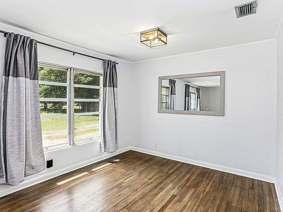 MUST SEE - This 3-bedroom, 1.5-bath home offers a functional layout and classic charm. The Jack-and-Jill style bathrooms provide convenient access between bedrooms, with original hardwood floors in two rooms and cozy carpeting in the living area. The kitchen features solid wood cabinetry and opens to a spacious family room—perfect for entertaining or relaxing. Enjoy peaceful mornings and evening breezes on the large front porch, just a short stroll from the bayou. Notable upgrades include a new roof and a whole-house gas generator, offering peace of mind during power outages. Situated on a large corner lot, this home has never flooded and is only blocks away from a scenic waterfront public park. Conveniently located near NAS Pensacola, top-rated schools, and shopping centers, this home is a true gem offering comfort, location, and reliability.