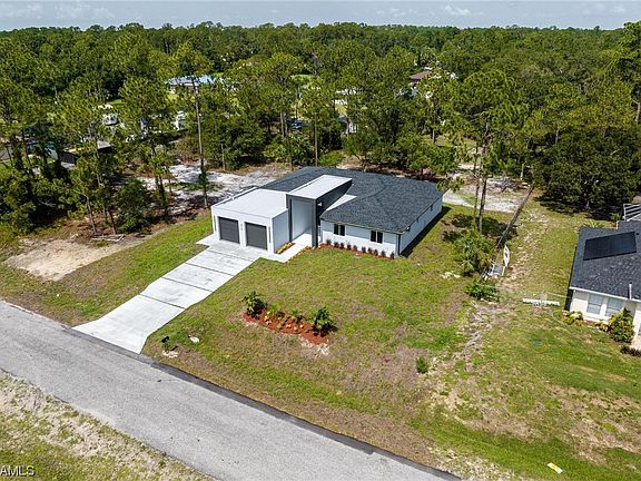 Why wait for your home to get built when you can purchase this NEW CONSTRUCTION MOVE-IN READY home that sits on 1/2 acre. This is a 4 bedroom, 2 bath home with almost 2000SF. This stunning home has an open floor plan, 14 ft high ceilings, porcelain flooring, high gloss inset kitchen cabinets with soft close drawers, quartz countertops with waterfall sides & porcelain backsplash, modern bathroom fixtures, glass shower doors, high gloss vanities with full sized mirrors & overhead lighting and marble windowsills, imported solid core interior doors with sound seal, including modern hardware for doors and electrical outlets. Home includes tankless hot water heater, extra storage cabinets in laundry room, hurricane resistant exterior doors & windows, epoxy flooring in the garage, outdoor security cameras with smart home integration, hurricane rated garage doors, all lights work with smart home integration system and much more. Relax in the back lanai overlooking the large shade trees. Come take a look at this home!!