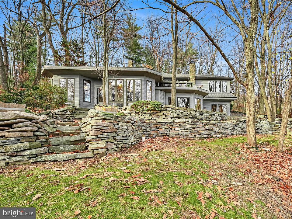 Offers received. Highest & best due Nov 27 at noon. Get back to nature and live among the trees on 8 acres in Blue Mountain! This home with cedar siding and stone walls, patios and walkways was designed to blend peacefully into the wooded surroundings. The modern and rustic interior offers exposed wood beams, a large stone fireplace, wood floors, and plenty of windows to let in the views and the light. The front door opens to a lovely enclosed and heated porch/patio with tile floor and windows galore. Beautiful wood and glass French style sliding doors lead to the living room with a Siberian Stone fireplace which efficiently helps heat the whole home by maintaining heat within the stone. The living room opens to the fully applianced kitchen with plenty of cabinets and creative storage spaces. A few steps down from the kitchen is a hall leading to 2 nice sized bedrooms; one with its own wood stove and stone hearth and wall full of windows to bring the feel of the trees inside. Across from this bedroom is the large bath with generous soaking tub and glass and tile walk-in shower. The second bedroom offers 2 closets and its own door to the main bathroom. Completing this level is a laundry room, large storage room and a door to the side stone patio. Upstairs, the second floor offers flexible use options. Currently set up as a "guest suite" this floor has a large open space that leads to a raised deck, a bedroom which surely feels like living in the trees, a kitchenette, full bath and a side room which could easily be converted to the 4th bedroom of the home. Outside the home is 8 acres of trees and wildlife, as well as a 2 car detached garage and a shed. With its design and function, 319 Deer Trail Dr will truly bring you back to nature . Please do not trespass on property without an appointment with a licensed real estate agent.