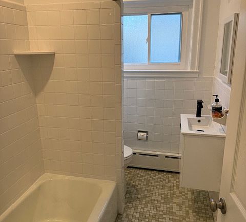 Bright and updated 1 bedroom, 1 bathroom apartment featuring a brand-new kitchen and updated bath. Unit includes three ceiling fans, washer and dryer, and additional storage in the basement. Off-street parking included.