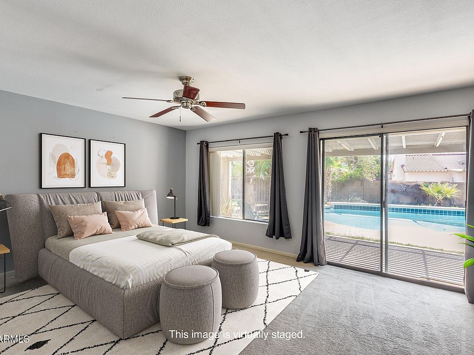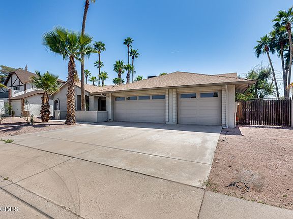 Nicely updated 4bd/2ba ranch-style home in a highly desirable Mesa neighborhood with NO HOA. This spacious property includes a versatile bonus room ideal for a home office, gym, or playroom. Interior features - fresh paint, travertine floors, granite countertops, ceiling fans in every room, & a fireplace. The primary suite - direct access to the sparkling diving pool, & the covered back patio provides an excellent space to entertain. The charming front courtyard enhances curb appeal. A 3-car garage with epoxy floors & built-in storage adds convenience & functionality. Just minutes from Downtown Mesa, Loop 202, Sloan Park (Chicago Cubs Spring Training), Oakland A's Spring Training, canal pathways, & Mesa Country Club. This home offers space, upgrades, & a prime location-Don't Miss It!!