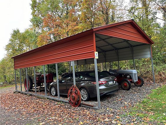 Pure seclusion, every access gated, homesite on 200 wooded acres. Containing three separate parcels, this could be split. 108 acres w home garage, pavilion, barn and free gas, 75 acres with free gas, and a 16.786 acre parcel. 2002 72'x28' 3 bedroom 2.5 bath beautiful home on a full basement with high ceilings and new sliding door walk out. Home has Great room layout with separate formal dining and living rooms. Master bedroom with vanity bath offering soaking tub and separate large shower. Full basement is wide open with broad beams and a custom made bar. 30'x30' 2 car garage with full storage(steps to attic ) heated, water and electricity, Huge pavilion and a very large pole barn. Fruit tree orchard in front yard! Recent Timber estimates for each parcel on record.