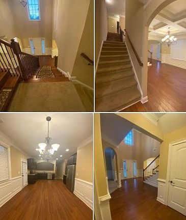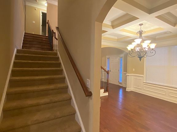 DO NOT DISTURB CURRENT TENANTS. Beautiful, large house with breathtaking dual split staircase! You won't find a more stunning staircase entrance, especially for rent. 2 Fireplaces in house, 1 in main living room and 1 in master bedroom sitting area. GARAGE FLOOR beautiful epoxy. Bedroom 1 is downstairs and conveniently located across from bathroom. Oversized Master Bedroom upstairs with separate sitting area with fireplace. 2 additional bedrooms are upstairs as well. Large living room with vaulted ceiling and fireplace. 2 car garage. Large laundry room, formal dining room, Kitchen with upgraded stainless steel appliances and kitchen dining area overlooking backyard. Immaculate split staircase and upgraded light fixtures in kitchen and formal dining room. Large Master Bath with large soaking tub which separates his and her sinks. Master Bath is large enough to accommodate a vanity with sitting area or elegant relaxing furniture.