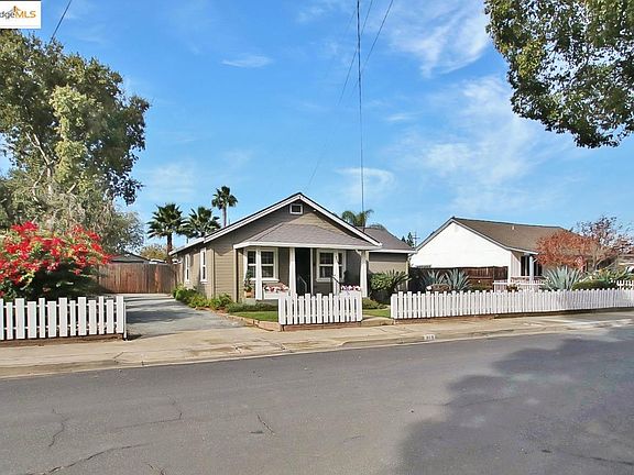 100-year-old charmer is a wonderful blend of old & new! A white picket fence, covered porch & gorgeous lead glass front door welcome you & your guests. Great open floor plan w/large great room that opens to the updated kitchen. Enjoy the new quartz counters & backsplash, large single basin sink, painted cabinets & more. Main bathroom beautifully remodeled w/ herringbone pattern flooring, floor-to-ceiling tiled shower surround, custom vanity, new fixtures & lighting, etc. Beautiful wood window & door casings! Dual pane windows. New paint in & out! New LVP flooring & high baseboards! Custom ceiling fan/light fixtures! 2” blinds. Decorative shelving. Bedroom closets w/built-in shelving. Indoor laundry room w/lots of extra cabinetry. Bonus room w/space for an office or extra storage. Newer HVAC system & tankless water heater. Single story home sits on a large nearly ¼ acre lot w/so many possibilities! Great back yard has so many great features & room to add more. Enjoy the covered back porch & separate patio w/shade structure, fire-pit, mature trees, multiple fruit trees, vegetable boxes, solar powered lights & more. Large detached single car garage, which includes shelving, power & a workbench. Gated boat/RV parking w/ plenty of room for all your toys. 2 sheds. Spacious basement.