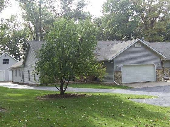 Sprawling 4700 sq ft 4 br 3 ba Ranch located on almost 2 acre wooded park like setting. 4 car garages includes detached heated detached workshop. New Master Suite wing of home measures 24x35 with all the extras. Family room finished with interior log walls, two way floor to ceiling fireplace, cathedral ceilings throughout. Chefs kitchen with solid surface counters, custom cabinets, tile and wood floors this is a must see!