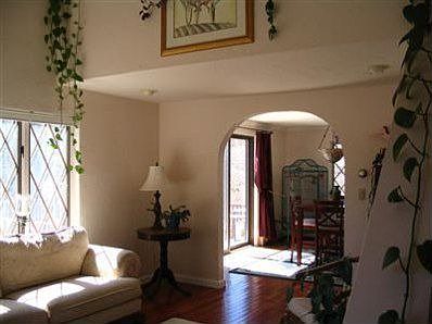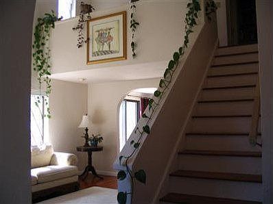 This Charming unique Tudor style home with large private backyard has 3/4 bedrooms and 3 full baths.Natural wood, and tile floors,stucco walls,arched doorways and earth tones throuhout.The firstfloor has beautiful Brazilian Rosewood floors in the naturally bright living room which is open to the loft. The den boasts a stone fireplace with cherry mantle and the formal dining room has a slider to the deck. Also, on the first floor is a bedroom, full bath and w/d hookup. Walk upstairs to a large wooden bookcase in the hallway. Off that is a loft now being used as an office plus another bedroom and full bath and laundry.Large spectacular master suite which used to be 2 separate bedrooms has a shower, jacuzzi tub and walk in closet.Storage space abounds with many closets, attic, full walkout basement. This home has many amenities.Garage