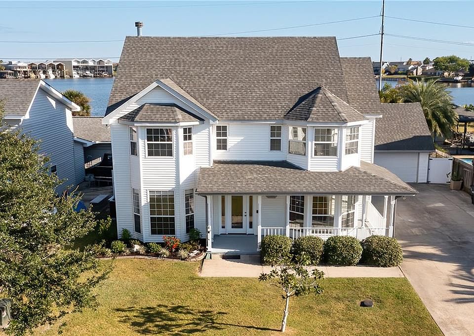 NEW PRICE & MOTIVATED SELLERS! Don't let the opportunity to own this waterfront oasis pass you by. The home boasts an oversized den with gorgeous stone fireplace and breathtaking water views. Home is currently being used as a 4 bedroom with a primary walk-in closet to die for. This home is a must see with amenities galore including an oversized dock, covered boat slip and lift, (Pilings were just wrapped and dock upgrades over $16,000 in dock work just completed. Gorgeous backyard with breathtaking view.
