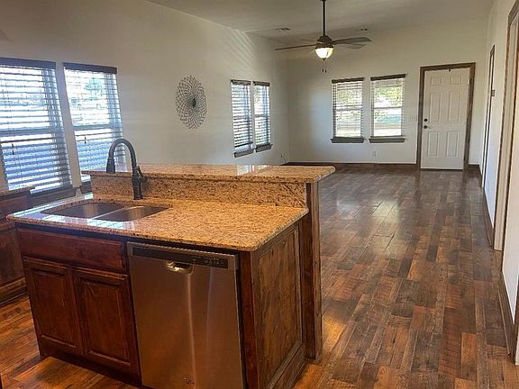 Adorable stone Bungalow with open living room, granite counters, stainless steel appliances, nice sized bedrooms with large closets, Great size laundry area with washer-dryer, as well as updated roof, cabinets, lighting, electrical and roof.