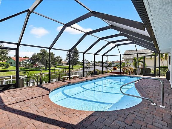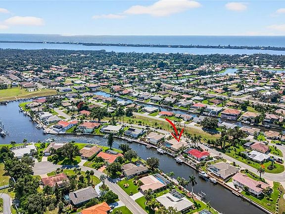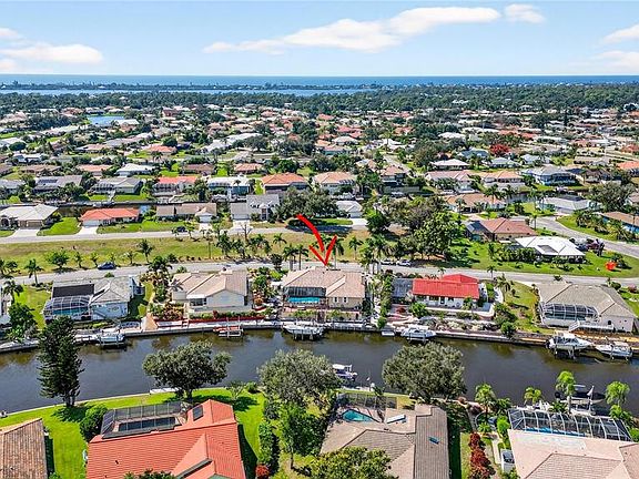 WATERFRONT PARADISE ON SALTWATER CANAL WITH ONE-BRIDGE ACCESS TO THE INTRACOASTAL complete with a NEW ROOF and HURRICANE IMPACT WINDOWS. Live the ultimate boating lifestyle in this beautifully maintained waterfront home in the desirable boating community of Englewood Isles where you can reach Lemon Bay and the Gulf within minutes. Step outside to your private backyard oasis featuring two patios, an extended dock, a 15,000-lb boat lift (new motor 2024), and 9,000-lb davits—perfect for powerboats, jet skis, or kayaks. This property is in an X Flood Zone, and combines peace of mind with beautiful water views. The Fibre Tech freshwater heated pool with a new pump and heater (2024) overlooks the canal, offering a serene setting to unwind after a day on the water. Recent upgrades include a new roof, facia, and soffits; aluminum lanai; and circular paver driveway with underground wiring ready for future landscape lighting, along with an updated 200-amp electrical panel that is hardwired for a generator (2024), and Impact-rated garage door (2025). Inside, enjoy high ceilings, ceramic tile flooring throughout, granite countertops, a walk-in pantry, breakfast bar with seating for four, and four sets of pocket sliding glass doors that open to the lanai for seamless indoor-outdoor living. The primary suite offers dual walk-in closets and a spa-like ensuite with a rain showerhead and abundant storage. Each additional bedroom offers walk-in closets and ceiling fans for ultimate comfort. This home abounds with comfort and space, with its split floorplan, great room with fireplace, and both a formal living room and formal dining room. With western front exposure, native royal palms, motion-sensor lighting, and thoughtful updates throughout, this home blends coastal comfort with effortless functionality. Whether you’re an avid boater or simply love Florida’s waterfront lifestyle, this Englewood Isles gem delivers move-in ready living with quick access to open water. Schedule your private showing today!