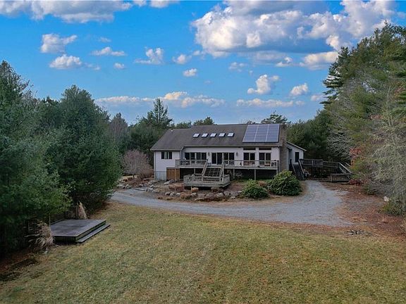 Discover coastal living in the hills of Charlestown. This one-owner custom-built Contemporary presents a rare opportunity to own 4.89 private acres of peace & tranquility- experience morning sunrises and star-studded skies overlooking wooded park-like grounds, while just minutes from Famed RI Beaches, Ninigret Park, and numerous scenic Nature Trails. Offering 4 bedrooms and 3.5 bathrooms spanning over 4700 sqft of comfortable living space; an ideal floor plan for seamless multi-generational living. With your convience in mind, this home is designed with 2 Primary en-suites including First Floor Master and spa-like bath with soaking tub, walk-in shower and 2 outdoor seating areas. Upstairs find 2 additional bedrooms connected by a Jack-and-Jill Bath and French Doors leading to a Juliet Balcony overlooking the first floor. No expense was spared when designing this Chef's Kitchen outfitted with Viking and Subzero appliances, granite countertops, and custom cabinetry. The open concept design provides access to the two-tiered outdoor deck maximizing indoor-outdoor living- an entertainer's dream! Floor-to-ceiling Andersen windows/sliders coupled with vaulted ceilings allow an abundance of natural light to cascade upon the Oak hardwood floors. First floor bonus room and expansive unfinished basement with direct access to the attached 2 car garage serve as a blank canvas to fit your ever-changing lifestyle. Call today and envision the possibilities of this truly signature property.