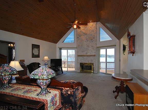 Beautiful water and close-in location make this the perfect spot for a weekender or permanent home. Lake views abound. Stone fireplace frames lakeside great room with high ceiling. Kitchen has lots of cabinets, great cooking space, and lakeside breakfast area with amazing view. Large 3 bay garage with workshop area. Partially finished additional lower level living space with fireplace and full bathroom.