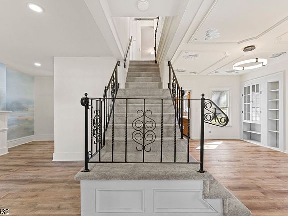 Plush carpeted center staircaseModern brushed gold hardwareImported wall muralsStainless steel appliancesCustom mosaic foyer