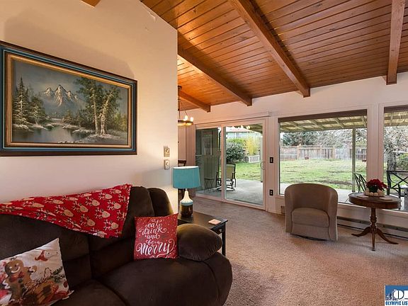 Welcome to this lovely one story home close to everything downtown Sequim has to offer! A great floor plan with 2 bedrooms plus a very large bonus room with a full bath off of it and it's own entrance. Many recent upgrades including a newer ductless heat pump, a new stove/oven, new sliding door to the patio, and new laminate flooring in the bonus room. Super cozy with vaulted wood ceilings and a wood burning fireplace in the living room. Enjoy the covered patio with a view of the Olympic Mountains.