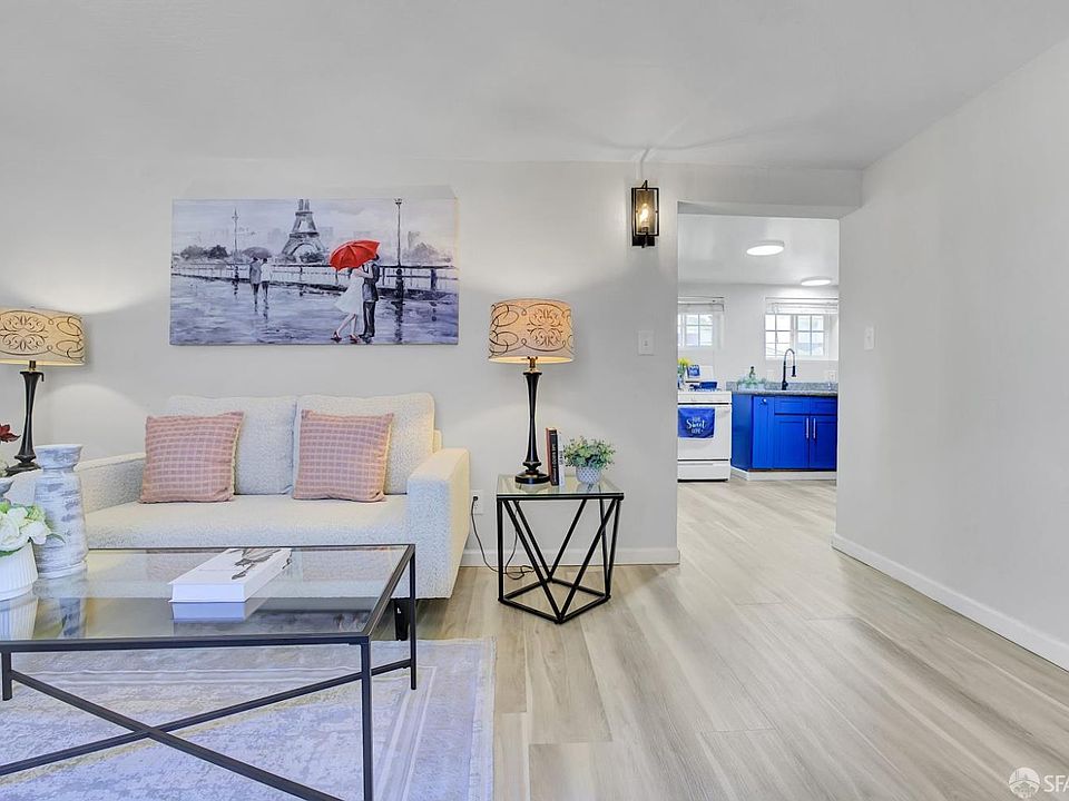 Contemporary flairSleek modern flooringFresh paintUpdated kitchen