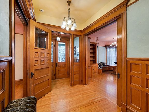 Anne style, showcasing a blend of dignified elements & stylistic restraint. Upon approaching the residence, one is immediately struck by its commanding presence. The facade is adorned with architectural nuances that speak to its distinguished heritage. A distinctive gambrel dormer adds a touch of whimsy, while a corner polygonal turret, crowned with a striking metal finial, commands attention with its graceful presence. Classical columns, raised on sturdy stone pedestals, further enhance the home's timeless charm, evoking a sense of controlled stateliness that sets it apart from its more ornate predecessors. Spanning (4) city lots, this grand residence offers an expansive living space across four levels, totaling an impressive 5354 sqft. The interior has been meticulously crafted to blend modern comforts with historic charm, offering 5 spacious bedrooms & 3.5 bathrooms. Extensive remodel work carried out between 2001-2003 ensures that the home seamlessly combines period details with contemporary amenities, creating an atmosphere of refined luxury. In addition to its main dwelling, the property features a newer ADU above the garage, providing versatile living options for guests or additional rental income. A new roof installed in 2008 further ensures the longevity of this architectural gem,