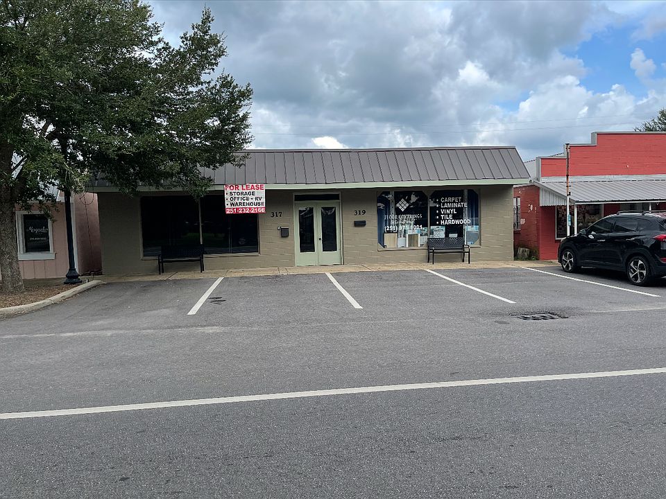 This listing is for 319 S. Alston St, Foley, AL. This listing can be used as a showroom with warehouse, retail, professional office, boutique, restaurant, barber/beauty shop, antique sales and refurbishing, and many other business options. Please call to see if your business qualifies. Includes parking and greenspace.