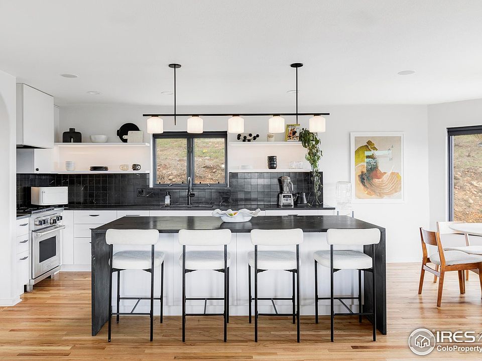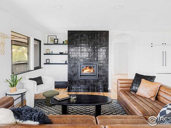 Actively looking for a back-up offer. Elegant custom 4-bdrm home with spectacular 180 degree mountain views! Light, updated open floor plan with impressive vaulted ceilings and picture windows throughout. Main floor bedroom with adjoining bath. Spacious kitchen with beautiful slab granite countertops, breakfast nook & top-of-the-line appliances including Wolf gas range. Large dining room with bay window. Separate living room and family rooms, each with its own gas fireplace. Beautiful hardwood floors and solid wood doors. Large Finnish sauna. Wraparound covered/lighted deck, plus expansive lower level stamped concrete patio with hot tub. Almost 2 acres of forested land in friendly Sugarloaf community. Peaceful living just minutes to Switzerland Trail & Roosevelt National Forest. Easy 15 minutes to Boulder. Shows beautifully!