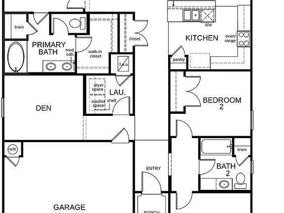 Discover a stylish home with an open floor plan and a cozy den. The kitchen features stainless steel Whirlpool appliances, Woodmont cabinetry, an extended breakfast bar countertop, an Emser Catch glossy tile backsplash, and a Moen faucet. The primary bath offers a Vikrell garden tub/shower and a dual vanity. Enjoy the convenience of a sprinkler system, wireless security system, Shaw carpet, and Sherwin-Williams paint throughout. Your perfect home awaits!