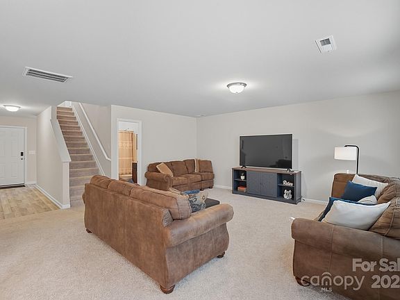 Upstairs, the primary suite impresses with a vaulted ceiling, comfort-height dual vanity, soaking garden tub, and an oversized walk-in closet. Four additional large bedrooms, a second full bath, and a conveniently located laundry room complete the upper level. Step outside to the patio strung with bistro lights—an inviting setting ready for your outdoor living vision. This home sits just across the road from the lake and minutes from the Circle Drive Boat Ramp at 724 Shoreline Dr. in New London, NC. The ramp offers 40 boat trailer spaces, single vehicle parking, universal access with dock handrails, a paved walkway, and restrooms. Everyday essentials are close by—just a 10-minute drive to Dollar General/Family Dollar and 20 minutes to Hwy 49/52 for Food Lion, shopping, and dining.