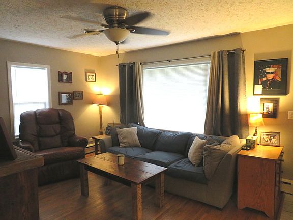Cozy two bedroom home features hardwood floors, updated bath with ceramic tile shower. The full basement offers ample storage, laundry including washer & dryer and a home office. Additional living space could be built out. One and a half car detached garage attached by breezeway to home. Kitchen appliances remain. Newer roof, windows and siding. Hot water heat for nice even winter temperatures but also includes newer central air. Walking distance to downtown, parks and Gebhard Woods State Park.