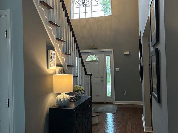 This stunning home sits high on a corner lot that backs up to woods owned by Berlin Borough, and is within walking distance to the soccer fields, community center, and the Berlin Community School. Beautifully landscaped, this home has it all, and then some. On the front porch, there are a pair of matching rocking chairs that are perfect to relax in at any time of day, but especially in the morning with a cup of coffee as you watch the sunrise. This home's soaring two-story foyer ceiling extends from front to back, creating a dramatic but welcoming entrance. Three-quarter-inch real hardwood floors seamlessly flow through the main living areas on the first floor. A formal living room bathed in natural light from the morning sun is just to the left of the foyer and is open to the formal dining room, with stately columns defining the spaces. The dining room features a tray ceiling and chair rail molding. Down the side hall there is access to the basement, a stunning half bath with a pedestal sink, a laundry room, and a main floor primary suite. The generously-sized primary suite has windows overlooking the pool and boasts ample room for a king size bed. The tray ceiling with ceiling fan makes the primary bedroom feel cozy despite its size, and the suite includes a walk-in closet and large en suite bathroom with dual vanities, soaking tub, and separate shower. The family room, with its soaring cathedral ceiling and gas fireplace, is completely open to the upgraded and updated custom kitchen, featuring solid wood Bertch cabinets with soft-close doors and drawers, a pantry with roll-out shelves, and stainless steel Bosch appliances. There is also dimmable, under-cabinet LED lighting, a custom authentic antique brick backsplash, and a power strip of outlets mounted under the cabinets all the way around the kitchen keeping appliance cords off the countertops and out of the way. Windows in the kitchen overlook the beautiful resort-like backyard and sliding glass doors between the family room and kitchen lead you out to the backyard. You reach the home's second floor by ascending the custom wood stairs with matching handrails and white balusters in the foyer. At the top of the stairs is a loft that overlooks the family room, currently being used as a home office but would also make a great playroom area for younger children or game room for teens and adults. Off the loft are two spacious bedrooms, at 11x20 and 16x12, each with a large walk-in closet. A full bath is located between the two bedrooms. The backyard is your own personal, tranquil oasis where a large patio surrounds a custom saltwater pool with a stack stone feature wall and relaxing waterfall that tumbles into a heated, gunite pool that ranges from three to five and a half feet deep with numerous benches built into the sides. The backyard space includes an 80-inch TV that can be seen while floating in the pool and bilco doors leading to the full-height basement, making patio furniture storage a breeze over the winter months. In March of 202?, the HVAC was upgraded to a 96% multi-stage high-efficiency Rheem system with UV lights that kill bacteria, viruses, and other airborne contaminants. The GAF HD Timberline Roof was installed in September 202?. The home also features a full alarm system and full HD video surveillance around the perimeter. The entire property is covered by an underground sprinkler system.