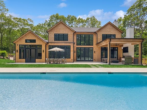 Rental Registration #: 24-495 This new construction home is next-level luxury with no details overlooked, nestled on over two well-manicured acres offering a spacious home with modern interior design. Newly completed in 2023, this residence offers a picturesque outdoor space for entertaining with outdoor fireplace, a screened in porch with television and outdoor shower, all perfectly placed around an oversized gunite pool with hot tub. Within the interior, encompassing 7 en-suite bedrooms and 10 bathrooms, two dens, a living room with double height ceilings and remarkable natural light through oversized windows, dining room, 3 car garage, laundry on the first and second floors, kitchen with top-of-the-line appliances and abundant cabinet space, finished basement and much more. The main level en-suite primary boasts two walk-in closets, a glass-enclosed shower, double vanity, and direct access outside. On the second floor you'll find 4 en-suite bedrooms all with their own spacious closets as well as additional closet space in both hallways. Two of the bedrooms offer views of the entire back yard. The finished lower level includes a den, two en-suite bedrooms, a fitness room and game area. Located close to East Hampton Village, this sophisticated modern design is convenient to restaurants, farm stands and world-famous beaches.