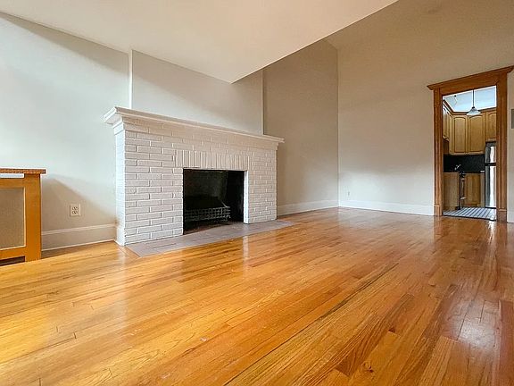 Beautiful wood entry and bedroom doors, original moldings and decorative fireplace with Mantle.