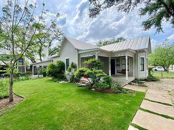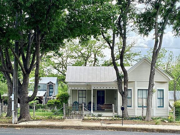 This circa 1916 Victorian cottage with an amazing addition has character, charm and location - a few blocks from the best of Fredericksburg. The home may be configured as a 3 bedroom 2 bath or 2 bedroom with office and/or second living area featuring high ceilings and an abundance of natural light. Custom masonry fireplace, inviting screened porch, large primary bath, laundry room and numerous custom built-ins make this place unique. The home has been thoughtfully upgraded - including paint, hvac, landscaping, foundation, insulation, and kitchen. The property also features a guest house apartment, carport and loop-wire fenced yards with irrigation Come enjoy this historic neighborhood and relax on the front porch. Also available for shorter-term lease #98345