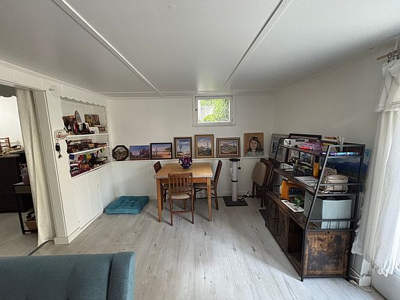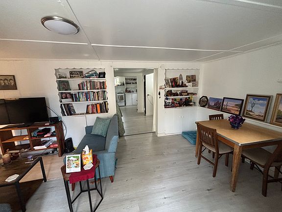Studio has a good sized living room with a separate dining area. Bedroom area has an office space perfect for working from home. Full kitchen with oven and fridge. Small patio space in front of unit.