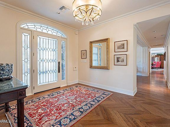 Renovations include all new plank hardwood floors; incredible mill work including crown molding throughout, wainscoting and board and batten in the entry and formal dining room. New kitchen with high end cabinetry and gleaming marble counters; gas Wolf cooktop and double ovens plus a Sub-Zero with bonus refrigerated counter drawers. All four bedrooms have ensuite baths. Incredible living spaces with a elegant formal living and dining rooms; inviting large family room plus a cozy study. Resort like backyard with sparkling pool; huge covered patio with fireplace and a true grill-masters kitchen. Lush landscaping with large shade trees and expansive lawns.