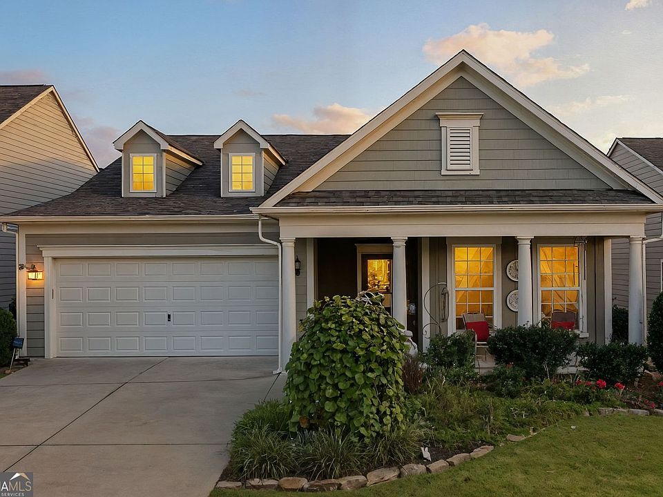 Step inside this single-level, thoughtfully designed home and find a layout that feels both functional and welcoming from the moment you walk through the door. The open-concept main living space flows effortlessly from the foyer into the living room, anchored by wide plank flooring and large windows that pull in soft natural light. The kitchen features cream cabinetry, a custom tile backsplash, granite countertops, and a large island with seating - perfect for morning coffee or casual meals. A breakfast nook offers space to enjoy a sit-down meal while still feeling connected to the heart of the home. Just beyond, the light-filled sunroom adds an ideal bonus space for reading, hobbies, or simply relaxing with a view of the backyard. Additionally, the walk-in pantry with custom shelving off the mudroom is perfect for large appliances and everyday essentials allowing for a clutter-free kitchen. The primary bedroom sits at the rear of the home, offering privacy and a peaceful view of the landscaped garden. The attached bathroom includes a double vanity, comfort height counters & toilet, a walk-in entry entry shower, and an custom oversized walk-in closet. The laundry room is conveniently located near the primary suite. A second bedroom and full hall bath sit at the front of the home, along with a flex room that can easily serve as a home office, guest space, or hobby room. Out back, a custom retractable awning offers shade over the extended patio, making it easy to host or relax outdoors. Mature trees and carefully curated garden beds surround the space which are easily managed with the irrigation system, creating a private retreat. Low-maintenance living with lawn care included through the HOA, all just minutes from Hickory Flat's shops, the public library, Northside Hospital, and more.
