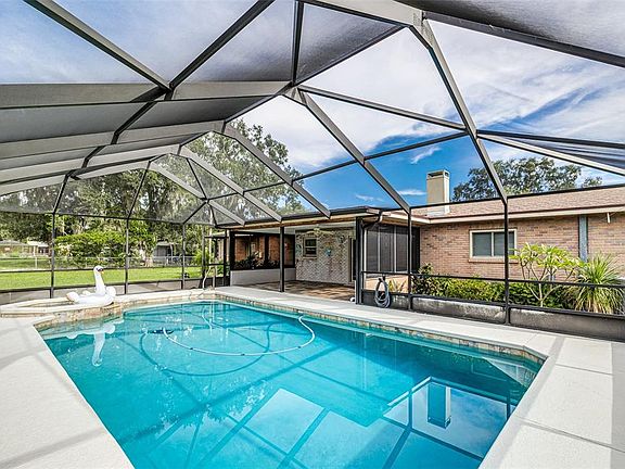 Nestled on 1.06 acres with no HOA, this beautifully maintained 3-bedroom, 3-bathroom pool home offers the ideal blend of space, privacy, and thoughtfully upgraded comfort. A brand-new roof (May 2025) crowns the home, while a 3.5-ton Comfortmaker AC system and all-new ductwork (2020) ensure year-round efficiency. Step outside to your screened-in pool retreat, featuring resurfaced and retiled finishes, a dedicated pool bath, and upgraded pool filter system—perfect for Florida entertaining. Inside, enjoy wood plank flooring in the formal living and dining rooms, newer kitchen appliances (2022), updated windows throughout, and insulated garage door with Race Deck flooring and built-in cabinetry. The home is further enhanced with upgrades like a new driveway (2023), well tank (2024), water heater (2021), and a switch to county water service (2018). Out back, a 14x24 Smithbuilt Bull Shed with roll-up door (2024) adds storage and utility to your spacious backyard setting. Located in North Lakeland with quick access to shopping, schools, and commuter routes—this property delivers both charm and practical luxury, with no HOA to limit your lifestyle.