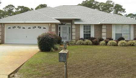 Ample living areas in this Emerald Lakes Destin Florida short sale home. 319 Wimico Ci has 4 bedrooms, with one perfect as an office with tiled floors. The living room is quite large with a cathedral ceiling. There is a foyer for a bit of formality upon entry. The kitchen has a breakfast bar and eat-in area. Emerald Lakes is a wonderful gated subdivision with lakes, tennis, pool, walking trails and great location. It is centrally located. Short drive to the beach, Destin Commons or Grand Boulevard and Sandestin's Baytown Wharf.
