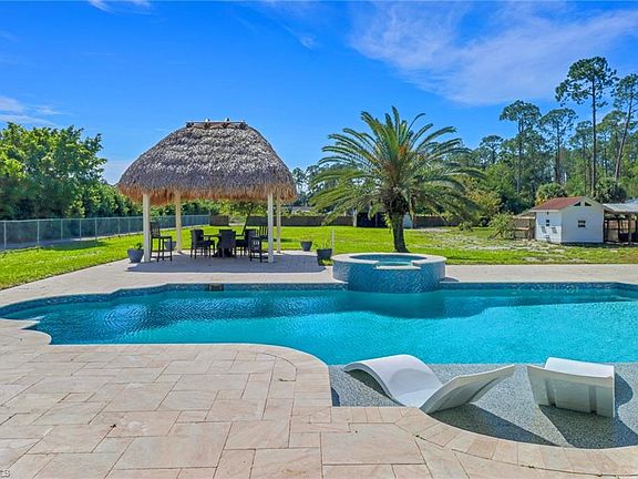 Spacious 2.67 acre concrete block home in a desirable off Collier location and convenient to all of Naples’ amenities. Property is waiting for a large family or could be a great investment rental opportunity featuring 6 bedrooms, 4 bathroom + 2 huge bonus rooms previously used as a home office and exercise room that could easily be converted to two additional bedrooms 2 car garage, two separate gated entries and a paved overflow parking area for large family gatherings. Pool and spa with Southern exposure, Thermador appliances, hardwired video surveillance system, custom closets, private well with whole house reverse osmosis system, Generac whole house generator, mature lemon, lime, banana and cherry trees, storage building in the back with electric, and a fully secured chicken coop building for your backyard flock. Horses are permitted and No HOA! This property has it all and is ready for a big family to make it their home. Motivated owner providing seller financing for qualified buyer. See this amazing home today and make it yours.