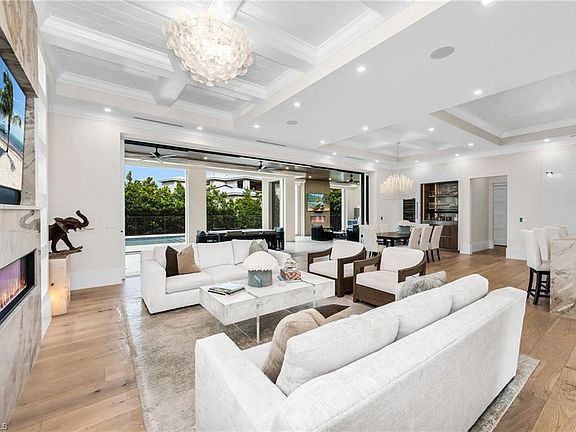 Stunning 2023 custom built home meticulously designed by Clive Daniel and Robb & Stucky interiors, furniture negotiable and features 5 bedroom/en suites, plus a Pilates / yoga studio. The home was designed to be handicap friendly with an elevator that takes you from the garage level up to the main floor and second floor of the home, also Perfect for heavy lifting! The primary bedroom features his and her walk-in California Closets, a large walk in shower, a free standing tub, electric blackout hunter Douglas shades and 2 private Japanese smart toilet rooms. Entire home offers an array of technology throughout and is powered by Savant Automations’ new *brilliant smart home system* with video audio and sound controlled from every area of the house linked to your smart phone. As you walk through this well thought out floor plan, you will find an expansive family room with floor to ceiling Anderson pocket sliding glass doors that allows plenty of natural light with wide plank legno bastone flooring throughout. The family room will lead you into the oversized Chef's Kitchen with Sub-Zero Wolf and Asko Appliances with a full butler's pantry. On the second level offers guest en suites, along with a large bonus room/loft that can be used as a home theatre set up or game room. Relax by your Resort Style salt water pool/spa surrounded by Brazilian trees while enjoying the Florida weather that also features a 900 sq foot lanai area with electric roll down screens and shutters, a fireplace, mounted 85 inch TV with 10 outdoor speakers perfect for entertaining. A built-in summer kitchen with outdoor subzero refrigeration and ice maker. This Moorings masterpiece has it all and touched by all. Within minutes to Historic Downtown Naples, white sugar Sand Gulf Beaches, and all that Naples has to offer! Just 1.5 miles to four seasons and waterside shops. Truly a rare find! 12 Foot Elevation.