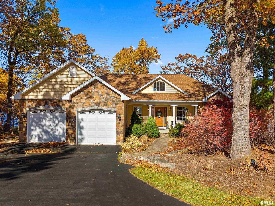 Experience the beauty of true lakefront living in this stunning 4-bedroom, 2.5-bath home at Oak Run. With over 3,200 finished square feet, this move-in-ready retreat was designed for both comfort and connection — to nature, to family, and to the water itself. Large windows and vaulted ceilings fill the open-concept main level with natural light and capture panoramic lake views from nearly every room. The spacious kitchen and dining area flow seamlessly to a screened-in porch and expansive deck overlooking the shoreline, perfect for morning coffee or sunset gatherings. The walkout lower level offers a family room and easy access to the gentle, sloping backyard, private beach, and dock. The steel wall, dock and boat lift were professionally installed by GH Marine Solutions, with permanent boat lift roof materials already on-site and transferring to the new owners. Completion of the dock is the buyer’s responsibility post-closing so they can choose the finish materials of the buyer’s choice. Enjoy main-floor laundry, a 2-car attached garage, and a convenient attached garden garage ideal for storing lake toys and outdoor gear. Built in 2006 and meticulously maintained — this is Oak Run lake life at its finest.