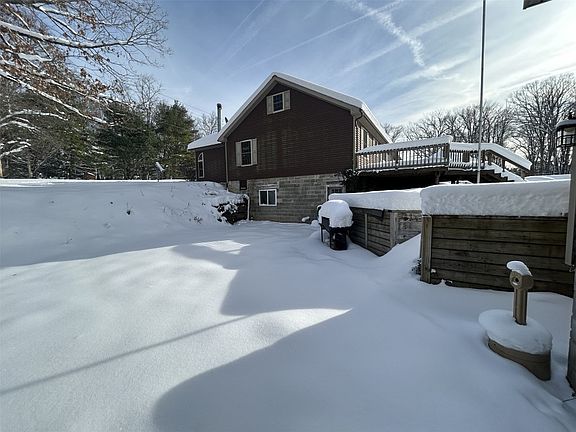 Here is a comfortable ranch home situated next to the Allegheny National Forest. It has 3 bedrooms, 2 full bathrooms, a furnished kitchen with natural oak cupboards and cabinets, a spacious living room and a family room with a wood burning fireplace. A dining room fits perfectly within the open living space concept. The den in the lower level has an awesome stone hearth fireplace and a unique open bar area with natural stone and natural oak. This is a great place for entertaining guests and hosting social gatherings. The value added 2 car detached garage provides plenty of space and the upper level is partially finished for an additional living area. The front and back yards are a bonus for this property. Schedule a showing ASAP to see all this property near Tidioute, PA. has to offer.