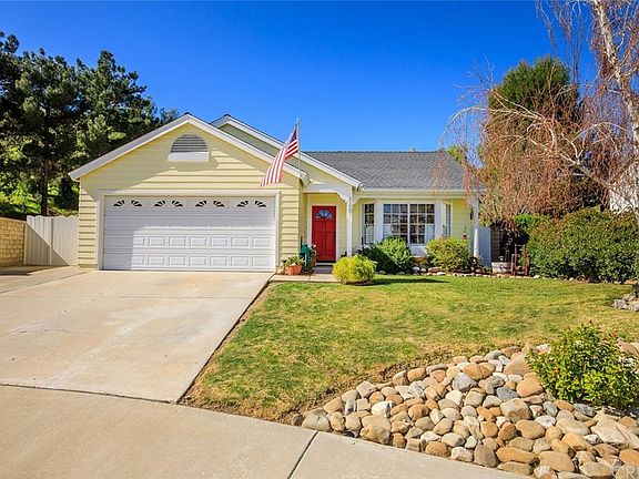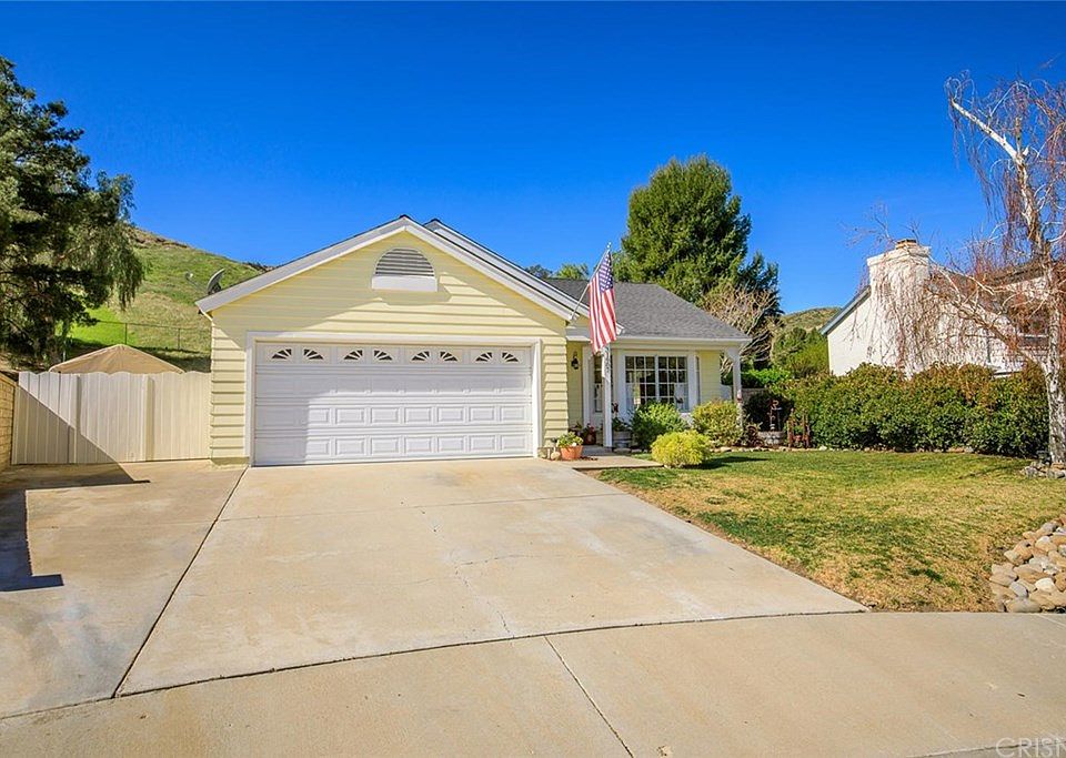 Charming 3 bedroom and 2 bathroom SINGLE STORY cul-de-sac home in the Hidden Lake community of Castaic. This light and bright home features vaulted ceilings, a brick hearth family room fireplace, lovely dining room which opens to the spacious living room and entry, wainscoting, and dual paned windows! The kitchen is complete with pantry, dishwasher, double sink, tile backsplash, plenty of storage and a beautiful garden window which looks out onto the large, private patio and back yard hillside views! Both bathrooms have been tastefully upgraded and offer tub and shower combinations and newer vanities! Walk out of the master bedrooms sliding door to the back yard with no rear neighbors and a beautiful open view! This is a perfect place to watch kids and pets play or just enjoy the serenity of nature. With two separate concrete patio areas, one conveniently covered, the other is used as a private sitting area along with built in brick fire pit and then...the huge RV PARKING on the side of the house! With no HOA and no Mello Roos, easy access to the 5 freeway and HWY 126, this is a home you will want to keep in your family for years to come!