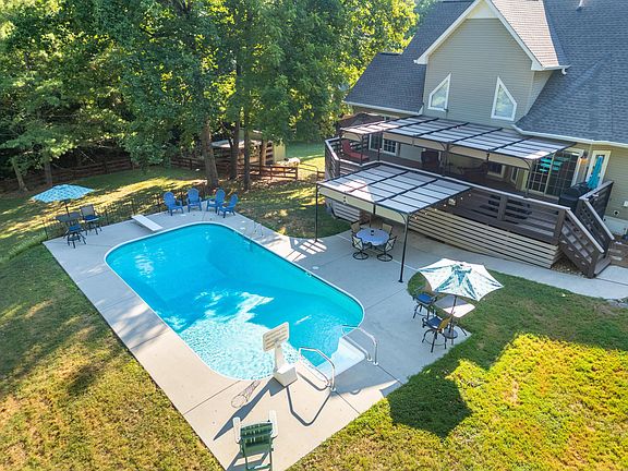 OVER 6 ACRES + CLOSE TO THE RIVER - Discover a serene retreat on over 6 acres with this stunning home that offers luxurious living and endless potential. Welcoming you into the home you will find a stunning living space that features a gas fireplace and cathedral ceilings. The chef's dream kitchen boasts ample counter and cabinet space, complete with a spacious breakfast nook, while a stunning formal dining area is perfect for entertaining. The primary suite, conveniently located on the main level, features a walk-out porch, a spa-like en suite bath with a stunning tile shower and a relaxing soaker tub. Upstairs, you'll find two oversized bedrooms and a well-appointed bathroom. The basement offers endless possibilities with an oversized entertaining area, a full bathroom, and an additional living space. Step outside to a covered porch overlooking a pristine inground pool and breathtaking mountain views. This property also includes a detached 2-car garage, chicken coops, and a small utility barn, making it a perfect blend of luxury and practicality. Don't miss the opportunity to make this beautiful home your own!