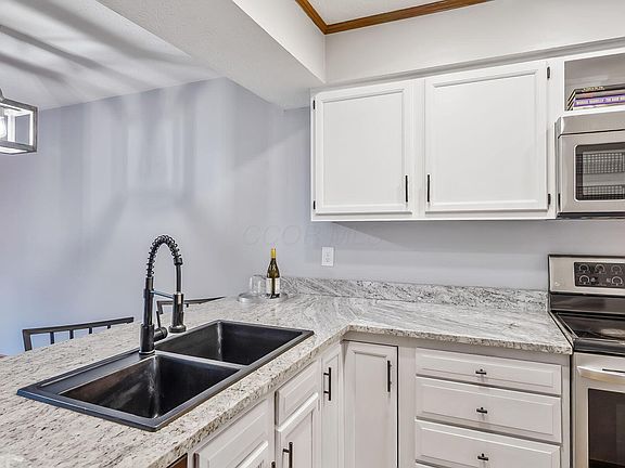 Beautiful end-unit condo featuring updated lighting, laminate floors, stainless appliances, a Bosch dishwasher, and granite counters—move-in ready for new owners. Rare 2-car garage: only five homes in the community have one, and this one converts to a screened porch with a pull-down screening system. Enjoy a charming garden along the back and side—ideal for planting or pets. 2 bedrooms w/ newer ceiling fans. The primary suite includes a walk-in closet and separate vanity, plus a full bath w/LVP; a half bath serves the main level. Finished lower level adds flexible living space or office. Seconds to Gantz Park w/ a historic farmhouse, renovated barn, arboretum, sports areas & dog-friendly fun. Don't miss it! Convenient location near shops, dining, and highways for easy commutes. Act now!