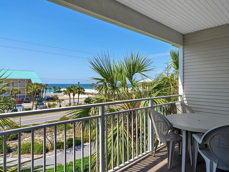 Step into coastal ease at this beautifully updated condo, perfectly situated just across the street from the sugar-white sands and turquoise gulf waters. Designed for both relaxation and investment, this residence delivers effortless style, recent upgrades, and strong rental performance.Inside, a bright open layout welcomes you with modernized lighting, a 58-inch Roku-enabled flatscreen TV, and a soothing palette that complements the surrounding seascape. The kitchen showcases stainless steel appliances and fresh interior paint, all completed within the last three years, alongside a new water heater. Sleeping accommodations include a king bed, hallway bunks, and a sleeper sofa, comfortably hosting up to six guests.Resort-style amenities await just outside your door. Take a dip in the seasonally heated pool, unwind in the brand-new hot tub, or enjoy a casual evening at the community grill. Additional conveniences include a bike rack, new washer and dryer, and the peace of mind that comes from a completed milestone inspection with no special assessments pending.