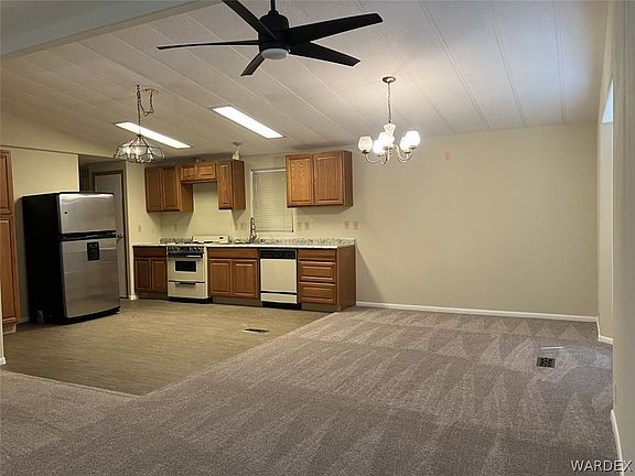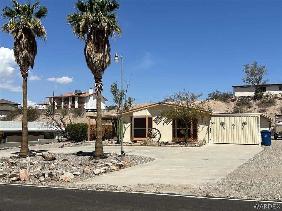 Looking for the perfect home with lots of room for your toys with no HOA? This 2 bedroom with bonus room which can be a nice sized office or den, 2 bath home is located only minutes from Davis Camp and the Laughlin casinos. Home has brand new carpet throughout and flooring in the kitchen. The large lot has plenty of room for you and your toys, horseshoe driveway with bonus parking on either side of the home plus the garage attached to the home.