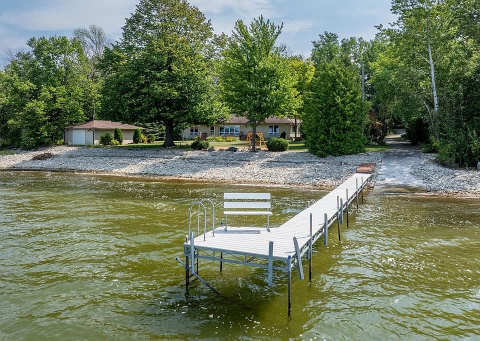 Breathtaking waterfront retreat! Escape to your private sanctuary with this spectacular waterfront property. This special listing has a paved boat launch, a boat house, a 3 car garage, and a beautifully landscaped yard perfect for enjoying the water, boating, and summer BBQ's. Watch the sunset with a glass of wine from the dock or the hot tub. Entertain in the spacious great room which offers panoramic views of the bay. This home offers unique rooms designed with different types of tongue & grooved woods. Whether you are seeking a full-time residence or a vacation home, this property offers the ultimate waterfront lifestyle. Don't miss the opportunity to own your piece of paradise. Furniture is also available.