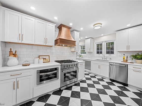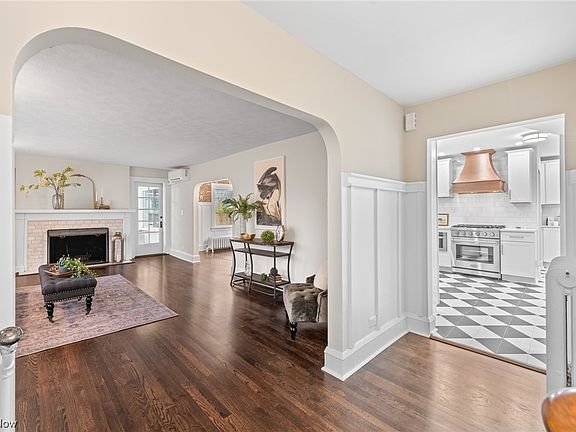 Welcome to this exquisitely designed Shaker Heights colonial! This 5 bedroom 3 bath home is absolutely stunning and has been extensively renovated from top to bottom. It has all of the classic Shaker Heights charm you love, AND the expensive improvements throughout! The entire home has brand new Pella windows, a brand new heating and cooling system throughout, freshly painted exterior with new siding, brand new kitchen, baths, and so much more. You are immediately greeted by the impressive curb appeal with new walkway and freshly landscaped yard. Enter into the charming foyer with custom wainscoting, gleaming, newly finished hardwood floors throughout the spacious living room and formal dining room and bright sunroom. The brand-new kitchen is an absolute stunner with marble tile floors and backsplash, wood range hood, high-end appliance package, gorgeous quartz countertops and plenty of cabinet space...the convenient first floor powder room completes the first floor. The second floor has 4 sizable bedrooms with hardwood floors, including a main bedroom with fireplace and private outdoor porch! The 2nd floor full bath has a beautiful, tiled floor and tub/shower surround. Walk up to the 3rd floor and 5th bedroom, perfect for either an owner's suite or guest suite with additional full bathroom with walk in shower...This home has a clean full basement for plenty of storage, a two car garage, and private fenced yard! This home is absolutely beautiful and a MUST SEE!!